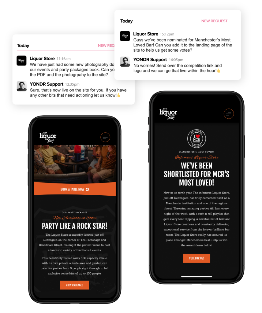 Staying relevant is paramount for venues like The Liquor Store and OneSite™ gives our partners unlimited changes and a dedicated private support channel unlike any other. This enables key stakeholders within the venue to quickly request updates, changes, and even new pages or concepts entirely that are actioned within 24 hours by our team at no extra cost.